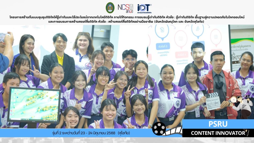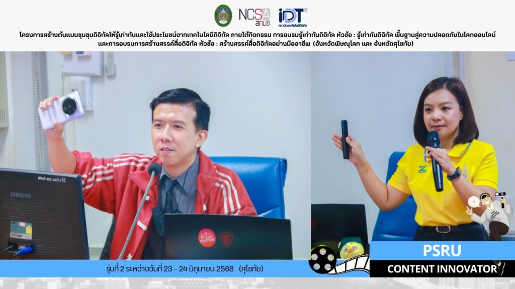 หัวข้อ : รู้เท่าทันดิจิทัล พื้นฐานสู่ความปลอดภัยในโลกออนไลน์และการอบรมการสร้างสรรค์สื่อดิจิทัล และหัวข้อ : สร้างสรรค์สื่อดิจิทัลอย่างมืออาชีพ (จังหวัดพิษณุโลก และ จังหวัดสุโขทัย)