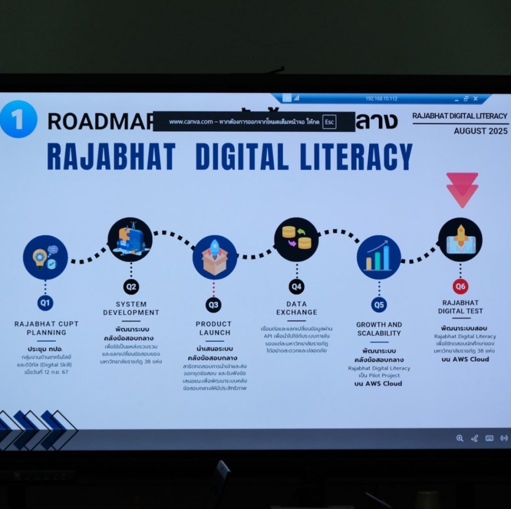 ผู้บริหารและบุคลากรสถาบันเทคโนโลยีดิจิทัล ประชุมสรุปผลการดำเนินโครงการปรับปรุงข้อสอบ PSRU Digital Literacy โดยมีการนำเสนอระบบคลังข้อสอบ Digital Literacy สำหรับมหาวิทยาลัยราชภัฏ 38 แห่ง รวมทั้งหารือแนวทางการพัฒนาระบบสอบ และระบบเรียนรู้ด้วยตนเองที่จะให้บริการนักศึกษาในอนาคต