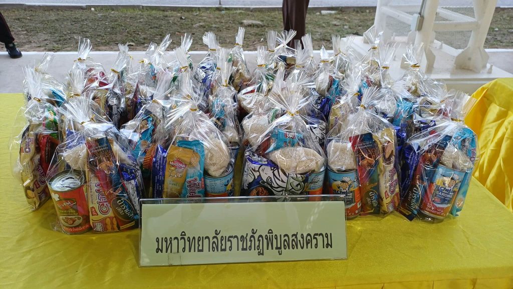 ร่วมพิธีเจริญพระพุทธมนต์และทำบุญตักบาตร (ข้าวสารอาหารแห้ง)