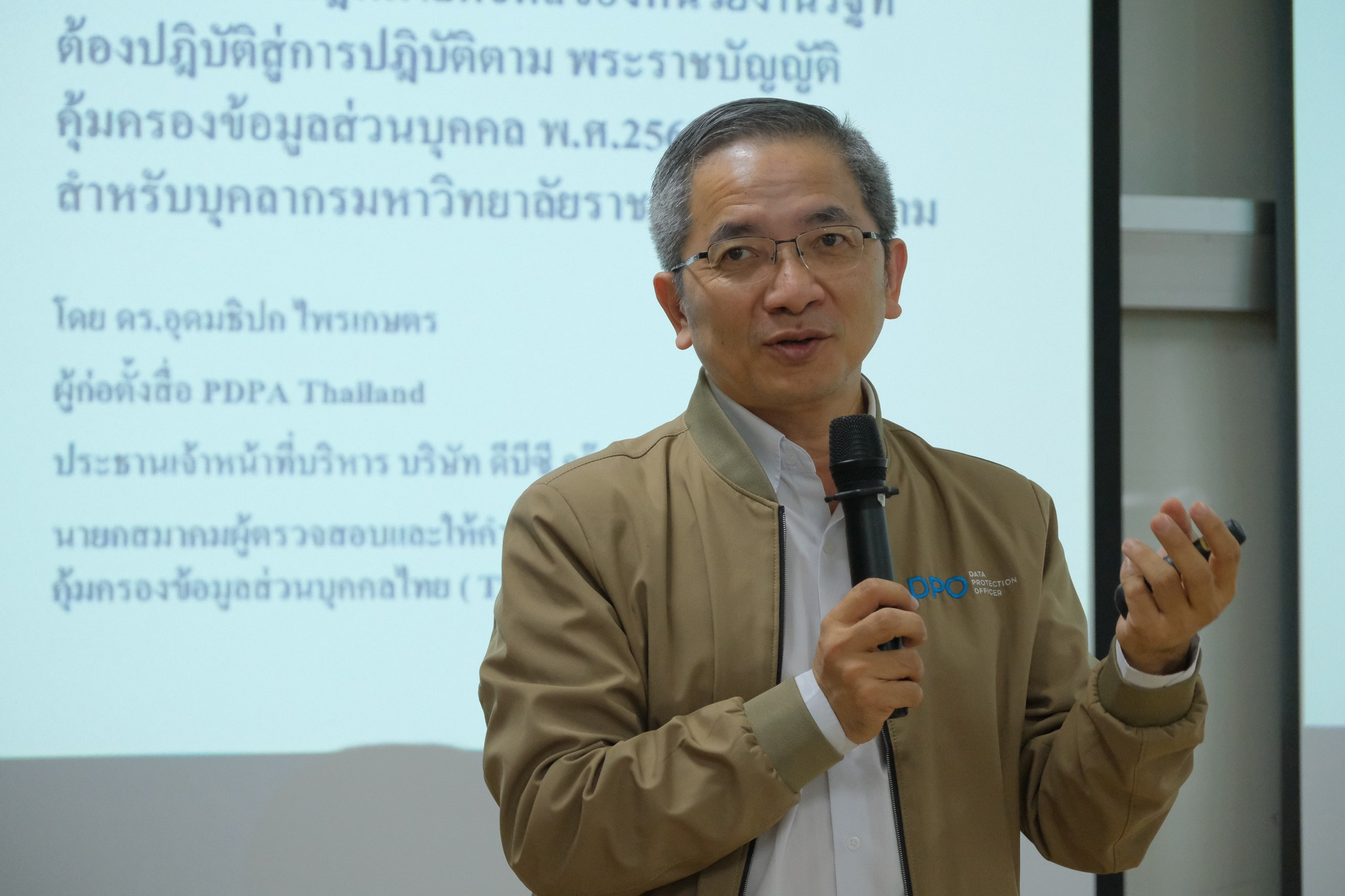 🔮การอบรมได้รับเกียรติจาก ดร.อุดมธิปก ไพรเกษตร นายกสมาคมผู้ตรวจสอบและให้คำปรึกษาการคุ้มครองข้อมูลส่วนบุคคลไทย (TPDPA) เป็นวิทยากร ถ่ายทอดความรู้และแลกเปลี่ยนประสบการณ์เกี่ยวกับบทบาท หน้าที่ และข้อกฎหมายดิจิทัลที่หน่วยงานรัฐต้องถือปฏิบัติ ครอบคลุมทั้งการบริหารจัดการข้อมูล การใช้เทคโนโลยีสารสนเทศ และหลักการคุ้มครองข้อมูลส่วนบุคคลตาม PDPA ที่มีผลบังคับใช้อย่างเต็มรูปแบบ