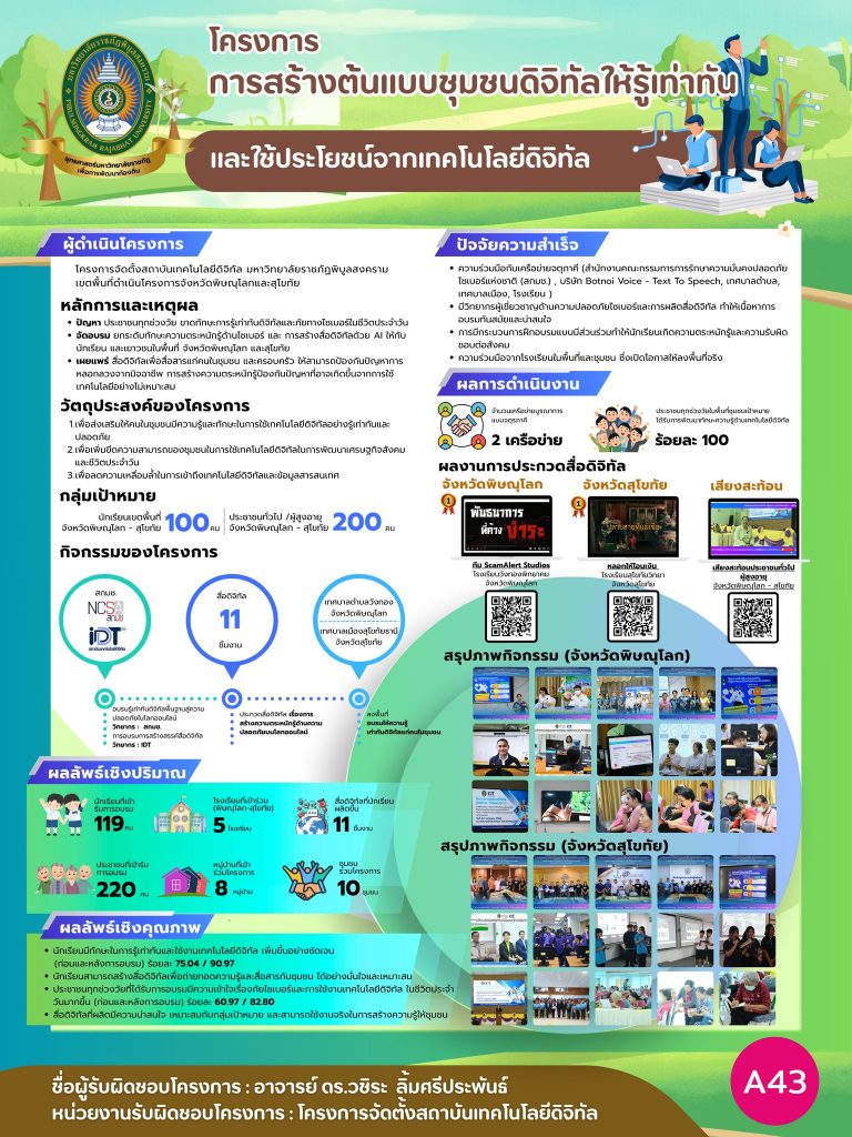 โครงการจัดนิทรรศการรายงานผลการดำเนินงานฯ “พิบูลสงครามสร้างสรรค์ ปั้นนวัตกรรม เสริมพลังชุมชน” วันที่ 7 – 8 สิงหาคม 2568ณ หอประชุมศรีวชิรโชติ ชั้น 2 มหาวิทยาลัยราชภัฏพิบูลสงคราม จ.พิษณุโลก