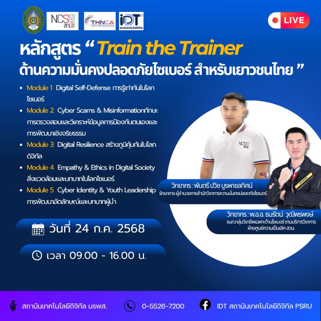 #IDTPSRU#NCSA#THNCA#TrainTheTrainer#CyberSecurity#PSRU#DigitalInstitute#CyberSafeYouth#มหาวิทยาลัยราชภัฏพิบูลสงคราม