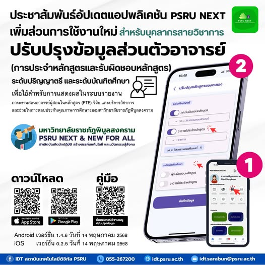 ข่าวประกาศ ประชาสัมพันธ์อัปเดตแอปพลิเคชัน PSRU NEXT เพิ่มส่วนการใช้งานใหม่22 กันยายน 202522 กันยายน 2025