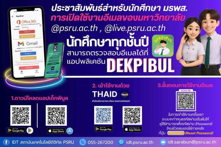 ข่าวประกาศ การเปิดใช้งานอีเมลของมหาวิทยาลัย นักศึกษาทุกชั้นปีของมหาวิทยาลัยราชภัฏพิบูลสงคราม (มรพส.) สามารถเข้าใช้งานอีเมลของมหาวิทยาลัย22 กันยายน 202522 กันยายน 2025