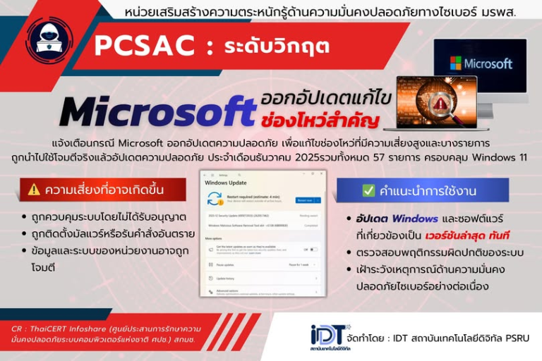 ข่าวประกาศ อย่าเลื่อนผ่าน! Windows เตือนให้อัปเดต ต้องกดทันที ห้ามรอนะครับ! Microsoft ประกาศอัปเดตความปลอดภัยประจำเดือน ธ.ค. 202523 ธันวาคม 202523 ธันวาคม 2025